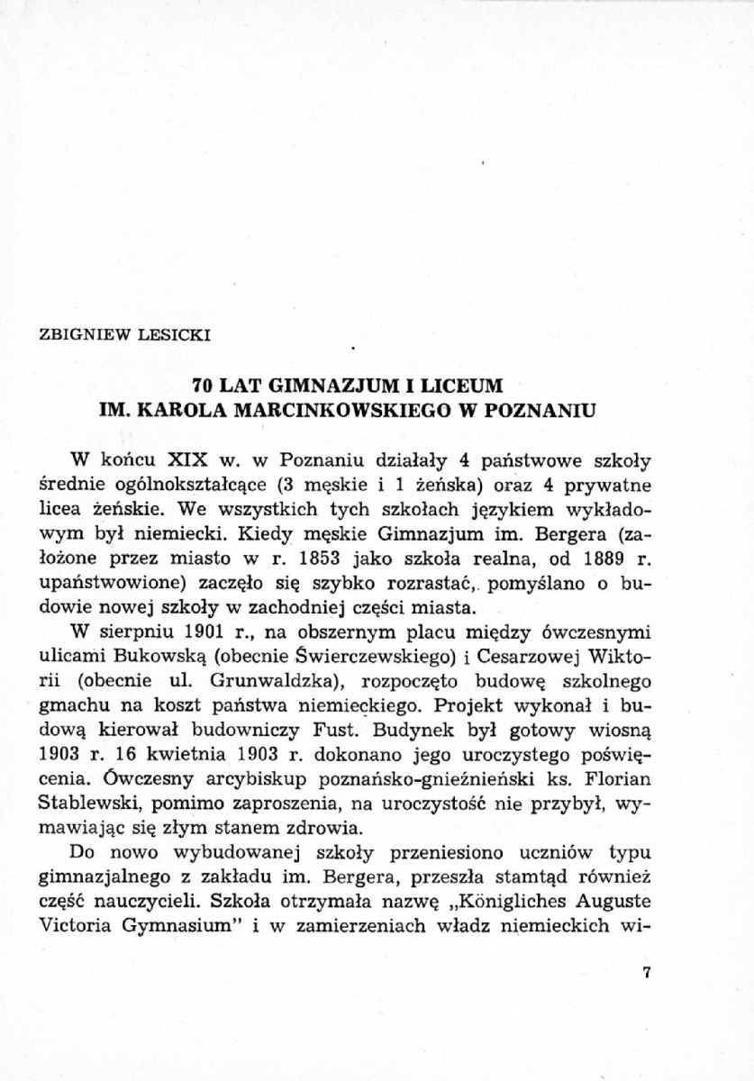 Zarys historii Gimnazjum i Liceum im. Karola Marcinkowskiego w Poznaniu