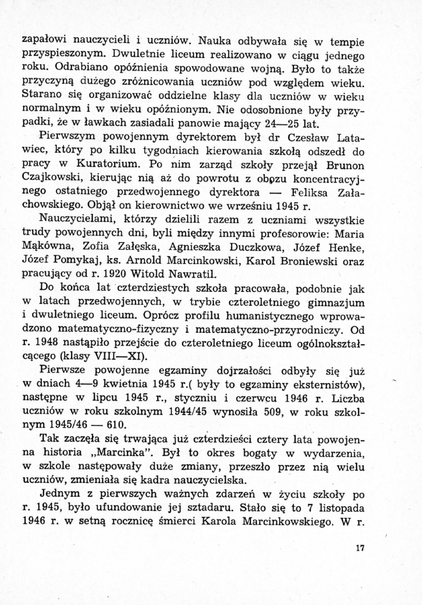 Nauczyciele „Marcinka” po roku 1945